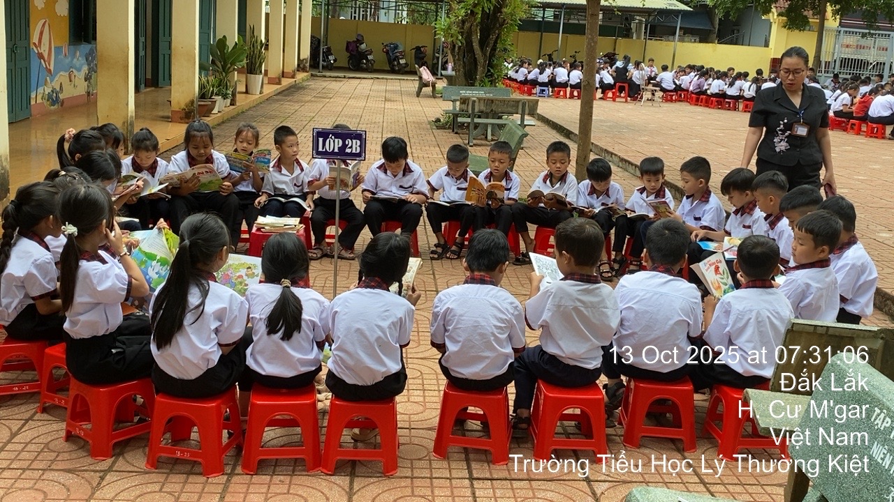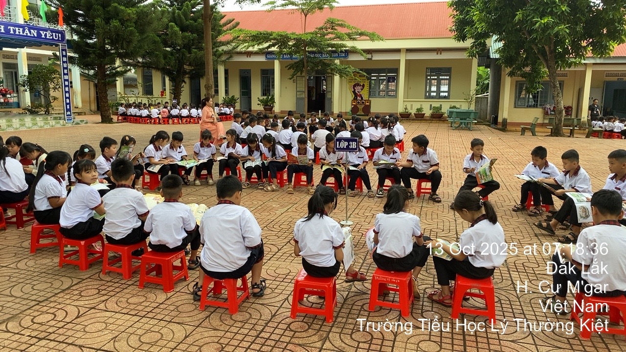 Sáng ngày 13 tháng 10 năm 2025, thầy và trò Trường Tiểu học Lý Thường Kiệt (xã Ea M’droh, tỉnh Đắk Lắk) đã có một buổi sáng thứ Hai thật đặc biệt và ý nghĩa với hoạt động “Giờ đọc sách đầu tuần” – một nét đẹp đang dần trở thành truyền thống của nhà trường.