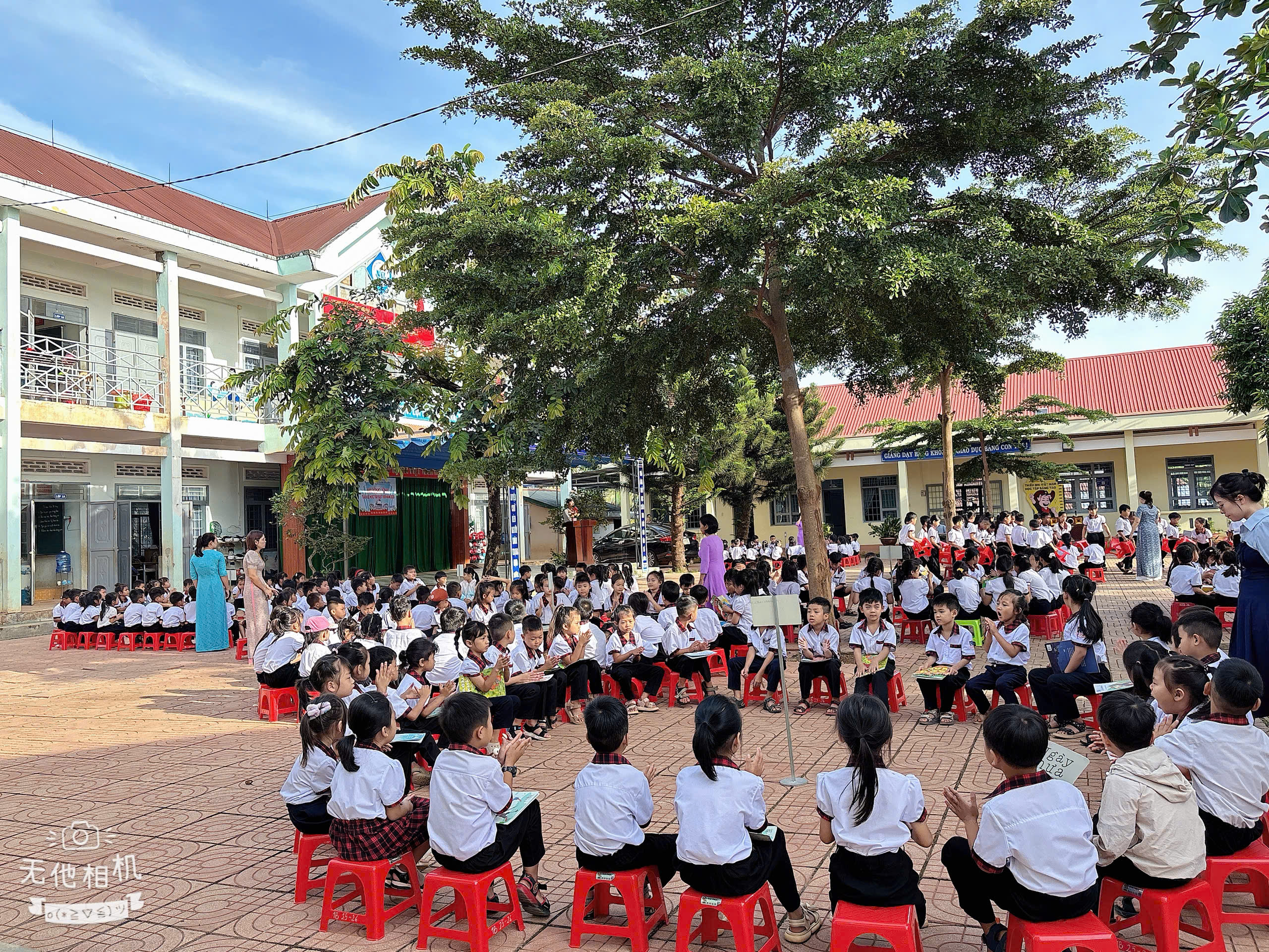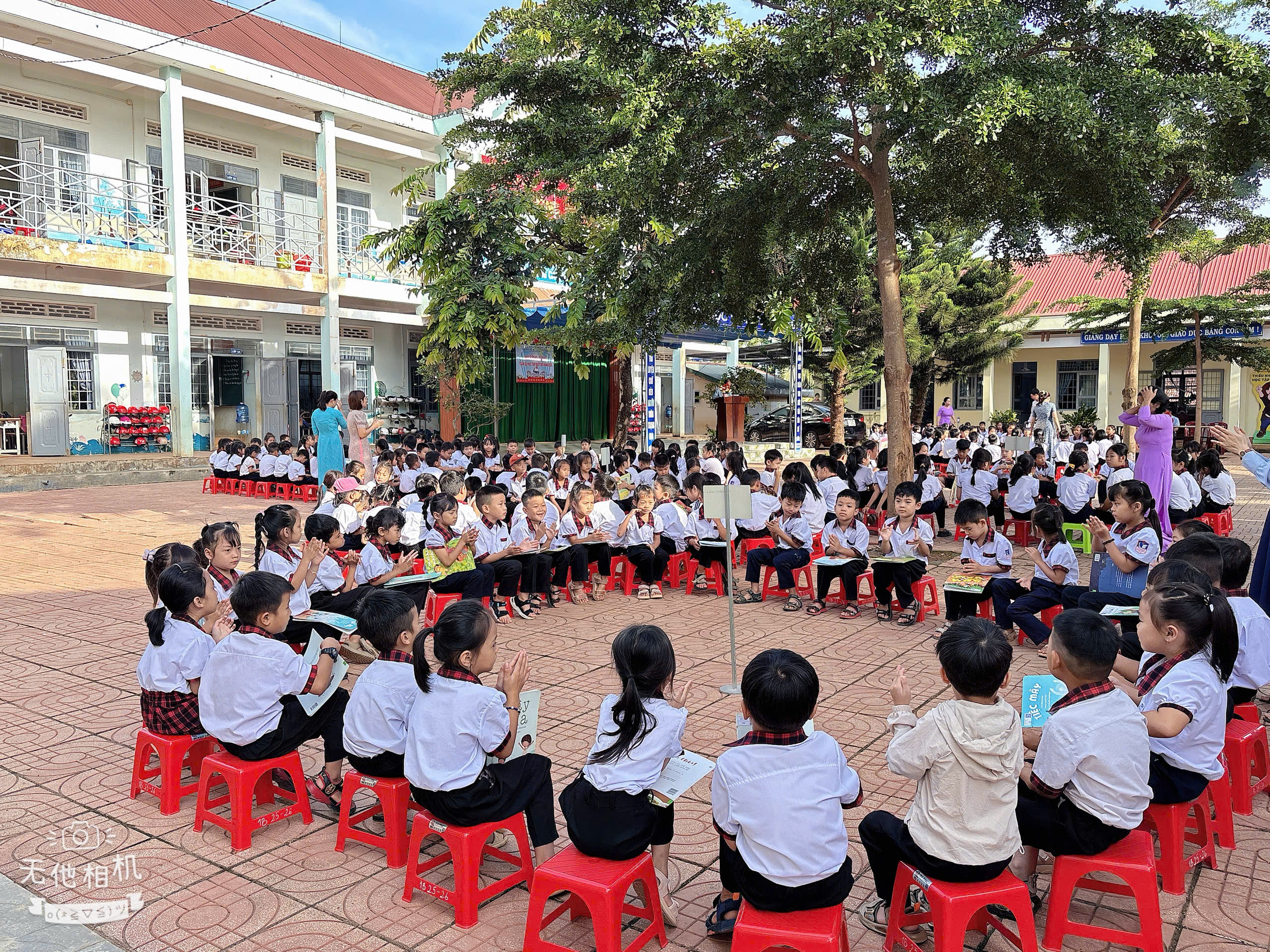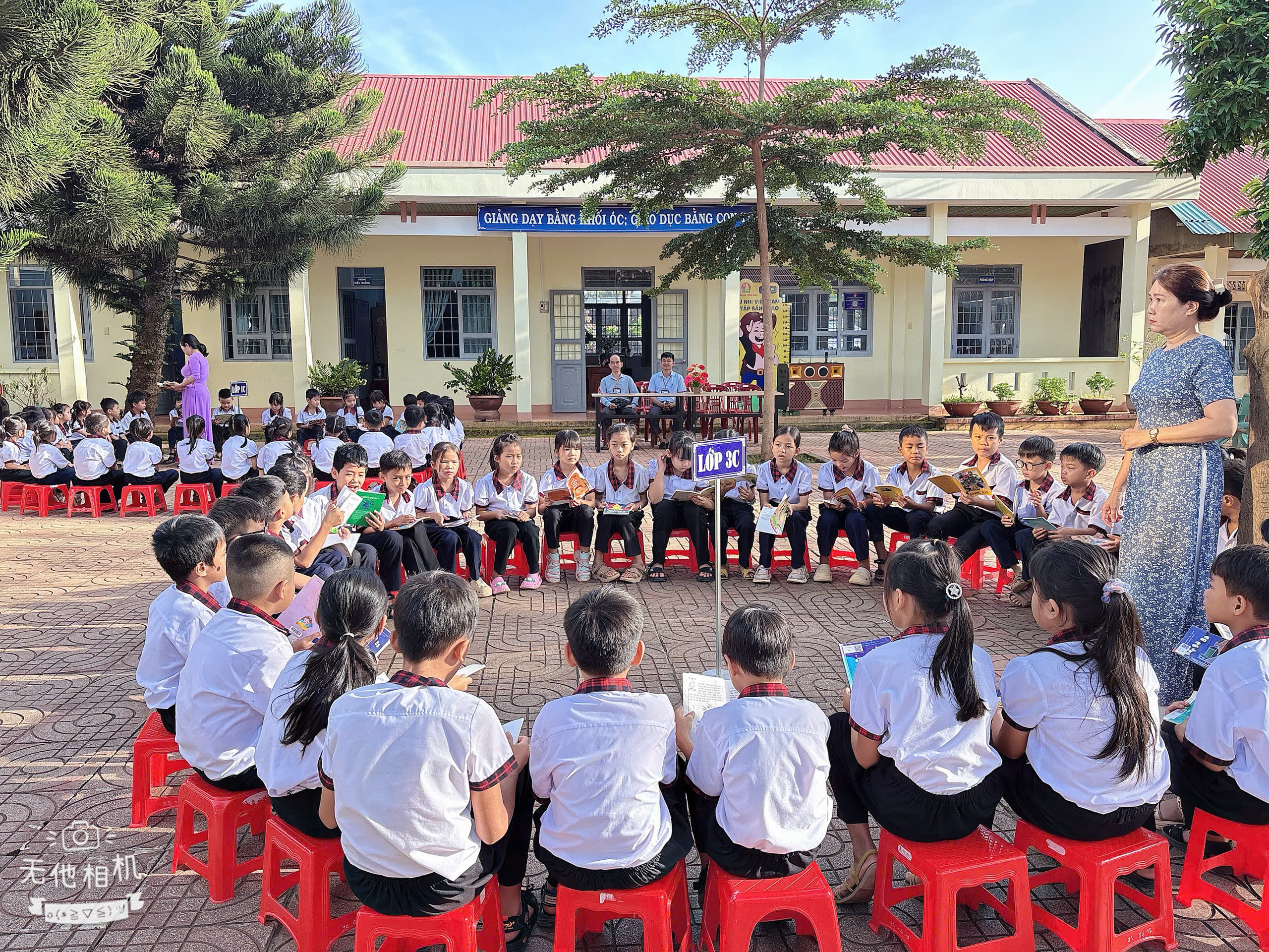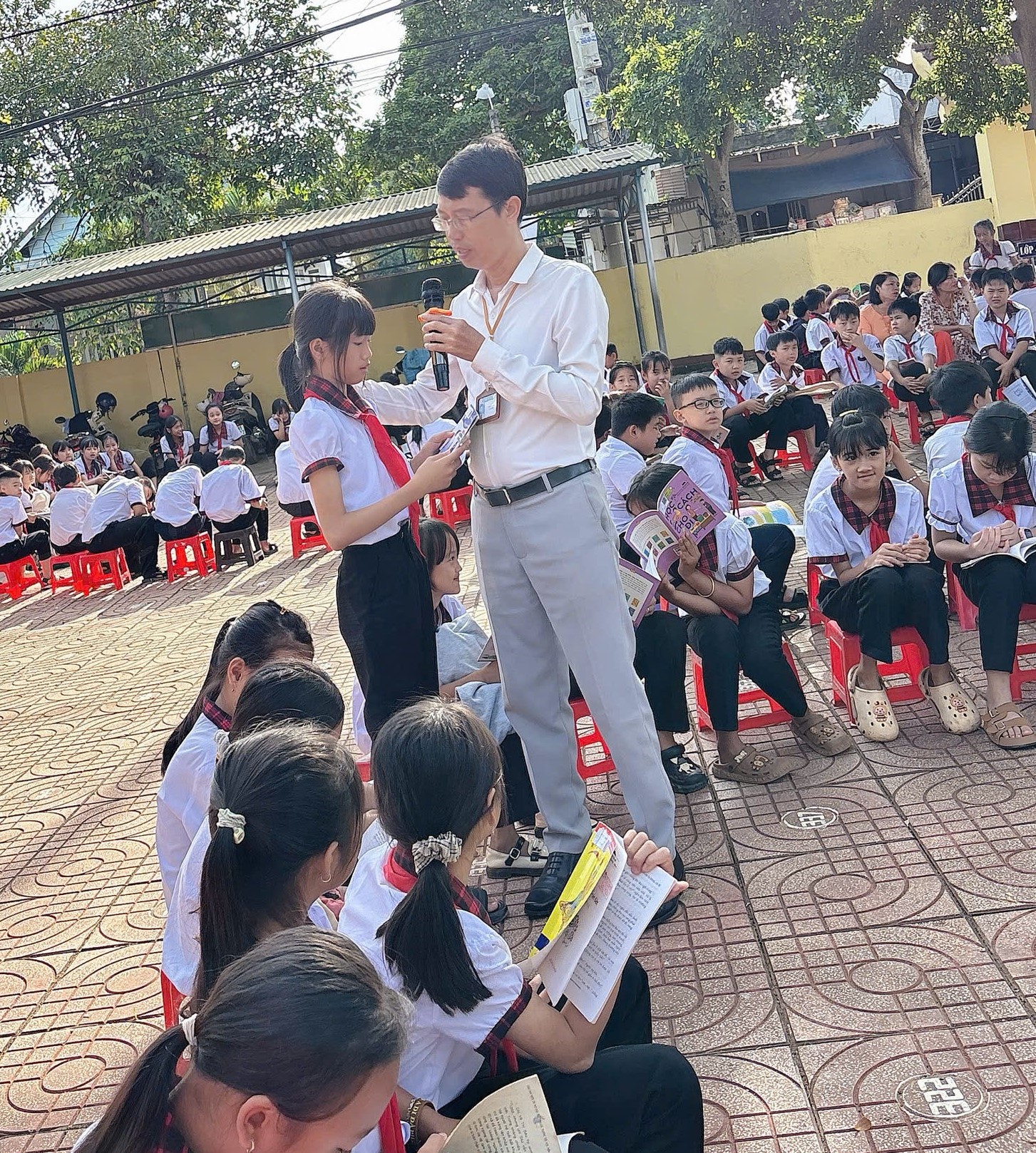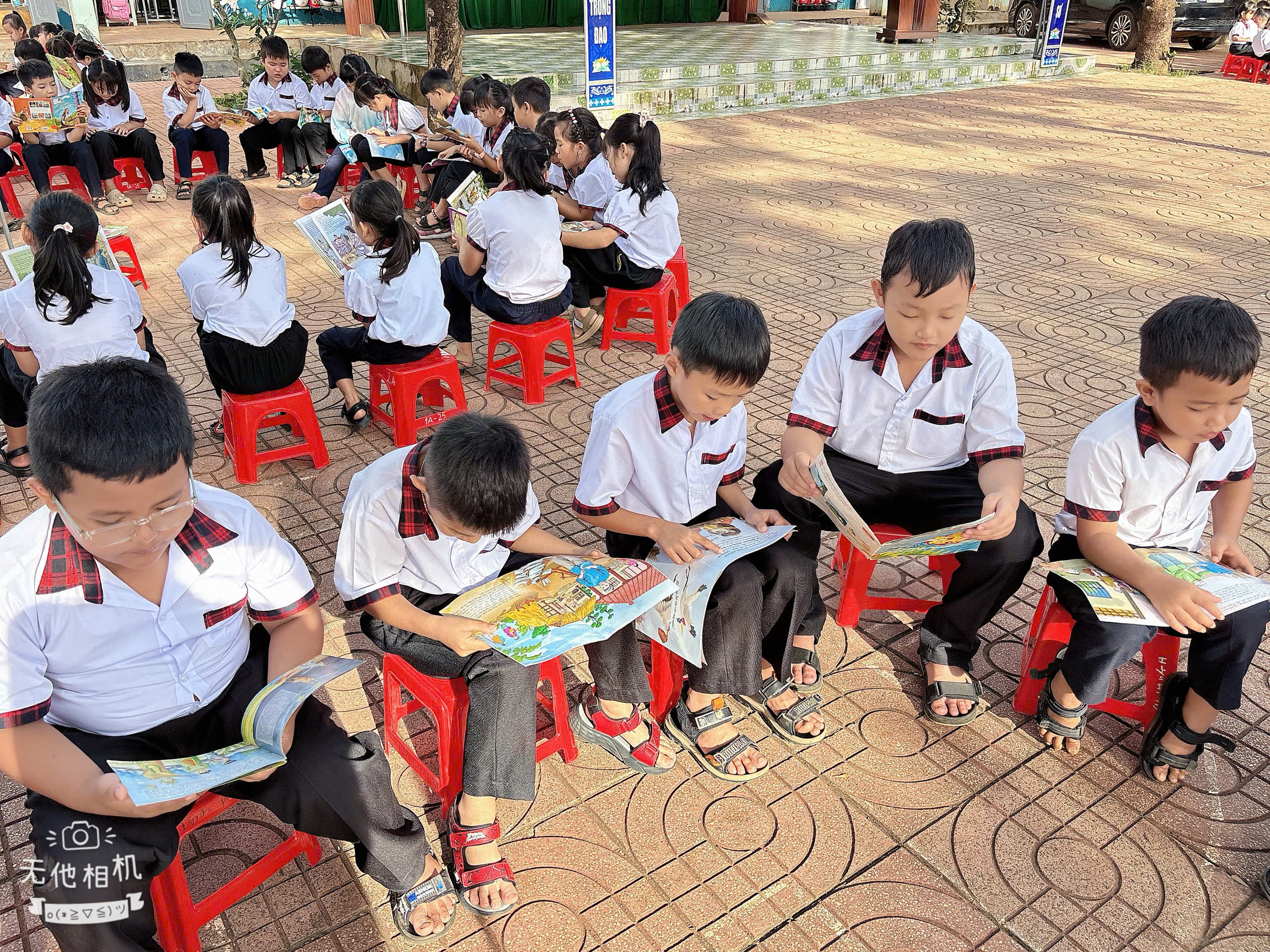 Ngay sau phần lễ, các lớp học sinh hào hứng tham gia hoạt động đọc sách tập thể ngoài trời. Đây là hoạt động thường niên nhằm khơi dậy niềm yêu thích đọc sách, góp phần hình thành thói quen tự học, nâng cao tinh thần học tập suốt đời.
